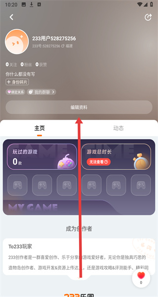 2、在进入到我的主页后,可以通过点击编辑资料按钮,进行修改个人信息操作。
