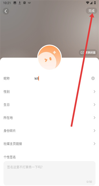 4、在完成对昵称的修改后,点击右上角完成按钮,即可完成编辑修改操作。