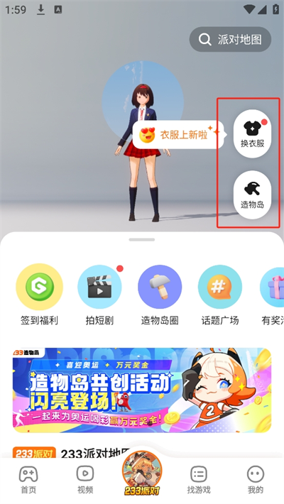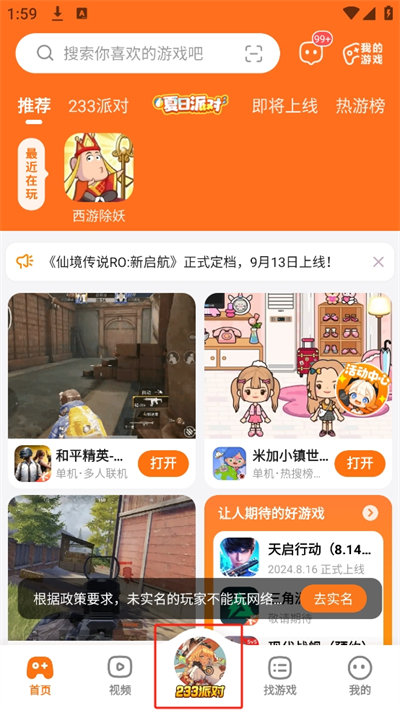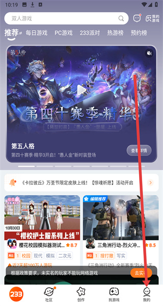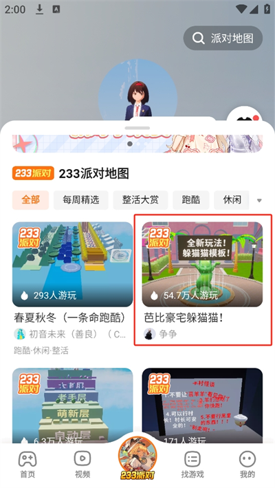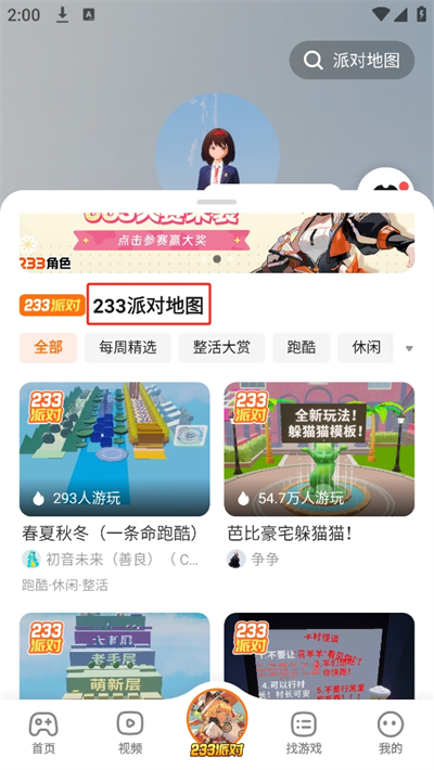 1、进入首页后我们可以看到各种不同类型的游戏,在【233派对】中平台为玩家们带来了可互动的派对玩法;