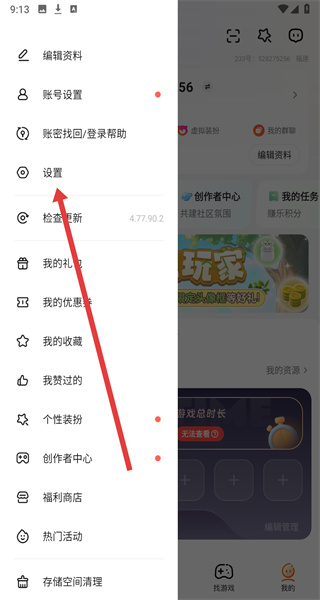 2、在展开侧边栏后,可以点击设置选项,进入查看相关设置功能。