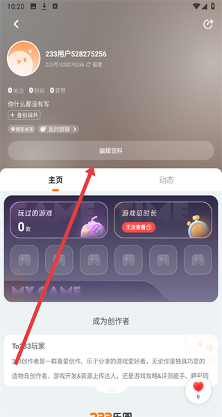 2、在个人主页中,可以点击编辑资料,进行修改资料信息操作。
