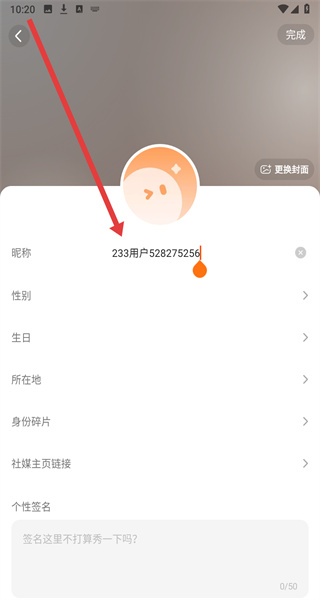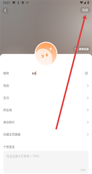 4、在输入新昵称后,点击上方完成按钮,即可保存新昵称完成修改。
