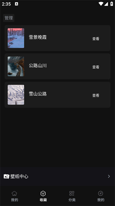 2、收藏里面可以管理和查看自己收藏的壁纸资源的内容;