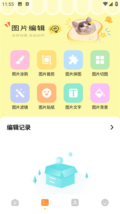 2、切换页面,这里有着海量免费的工具,如贴纸、裁剪等等,都能非常顺利的打造优质画面效果;