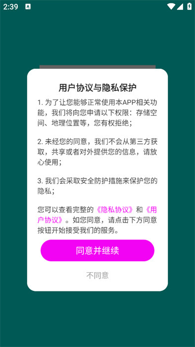 1、打开软件阅读隐私政策和用户协议之后,点击同意就可以进入到软件里面;
