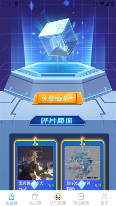 4、点击免费抽碎片即可快速的抽取皮肤隋品,碎片通过每日完成任务增加碎片的兑换;
