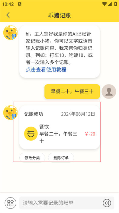 4、紧接着,将自己当天消费的情况输入并发送,就能生成详细的消费订单;