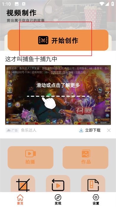 2、接着,进入软件首页,点击【开始创作】按钮,就能顺利跳转页面;