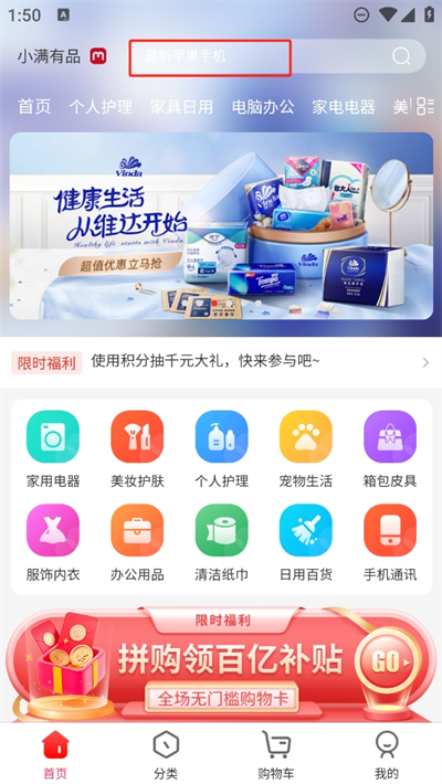 1、下载安装进入软件页面后,支持直接在搜索栏中搜索自己想要的商品;