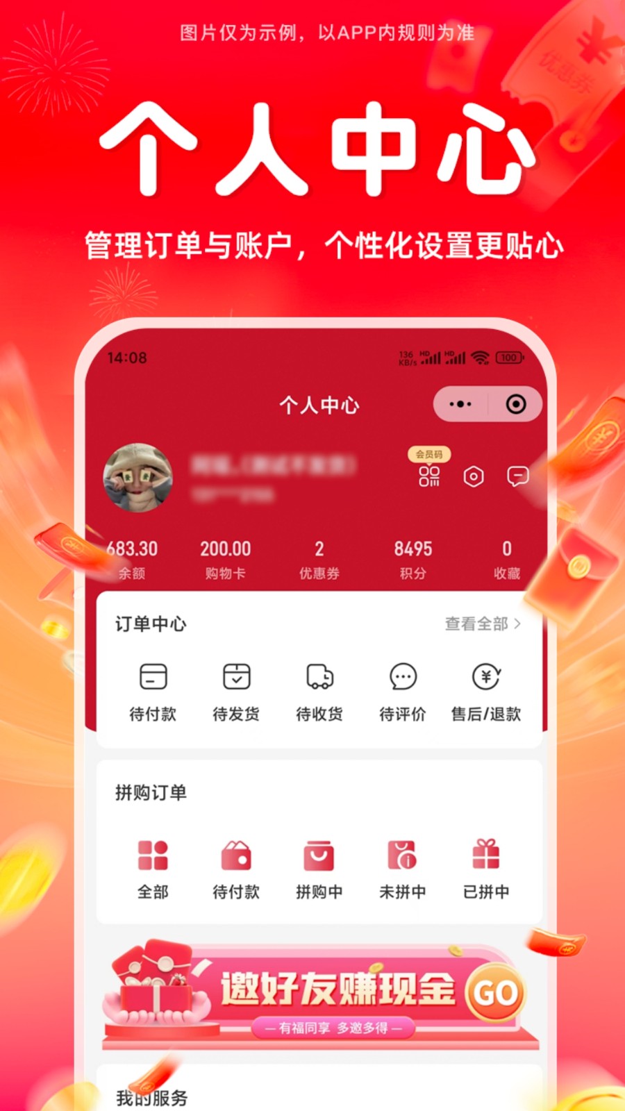 在购物上可以实现参加团购的购物方式,实现拼团成功享受超值折扣活动;