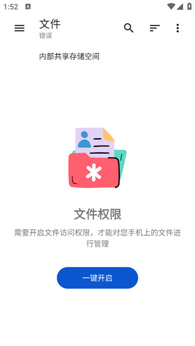 2、点击一键开启文件权限就能帮助用户们管理自己的文件;