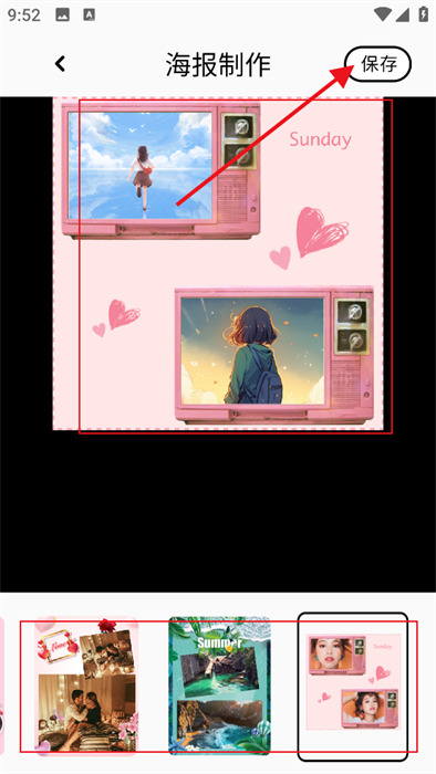 4、最后,可以在页面下方看到很多海报的模版,挑选点击并预览效果,如果很满意,可以直接点击右上方的【完成】,会自动保存到手机相册中。