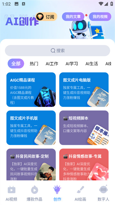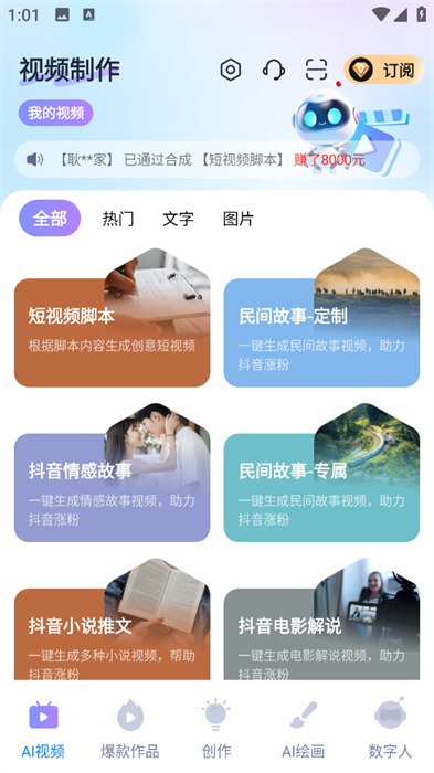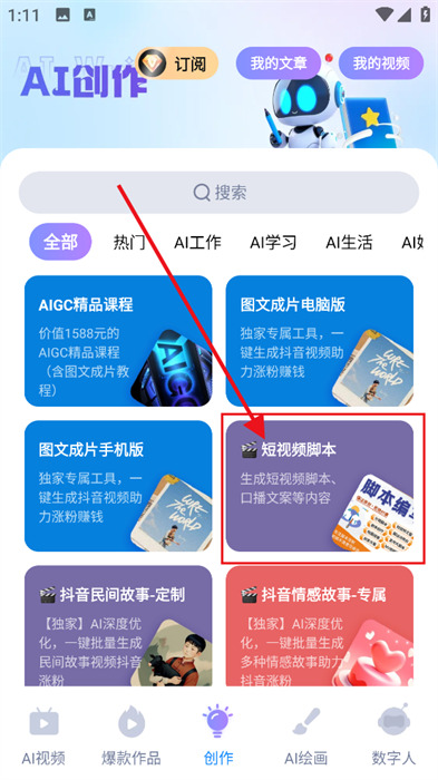 2、接着,进入首页之后,可以切换到【创作】板块,这里有现成的脚本模版;