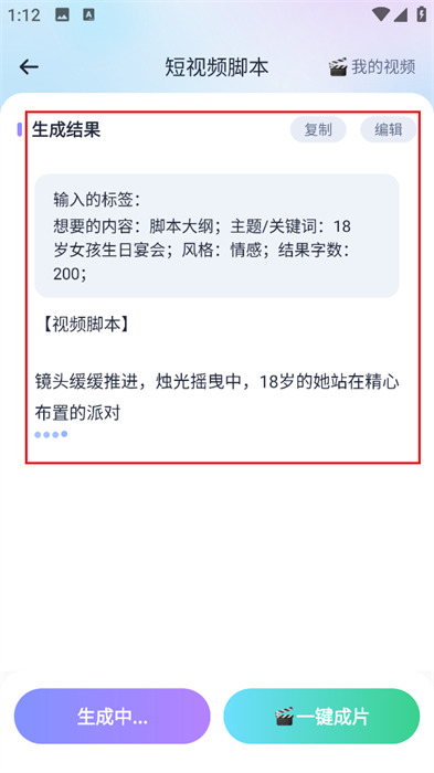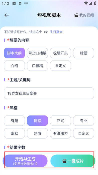 4、随后,跳转到详情页之后,输入具体对于脚本的描述,这样才能让生成的速度更高效;