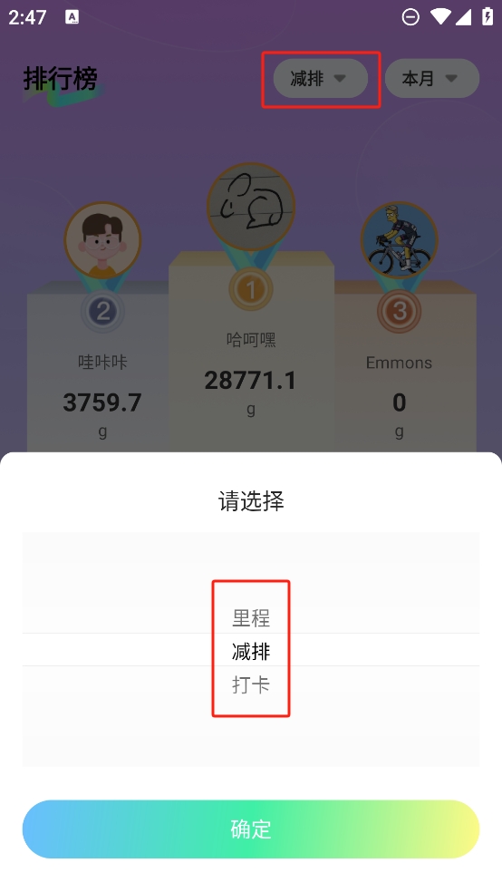 4、在右上角可以选择不同的类型的排行榜功能,比如在此可以看到好友减排的数据排行榜。
