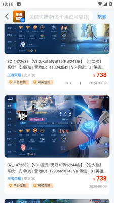超多不同的游戏账号类型可以自由选择,包含王者、吃鸡、DNF、绝区零等;