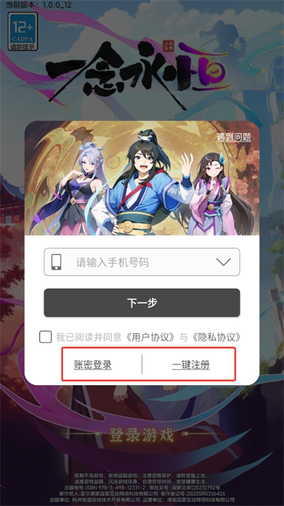 1、进入游戏后将会看到支持账号密码登录,或者一键注册登录,新手需要选择一键注册进行登录;
