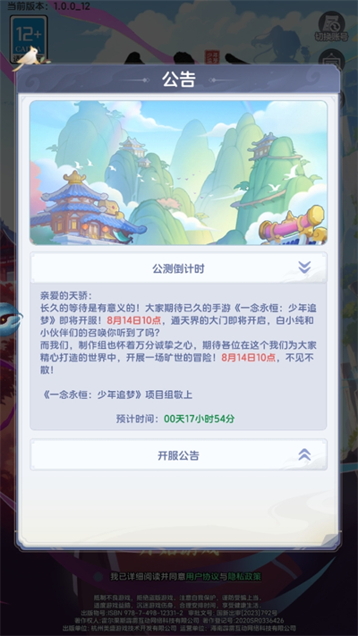 4、由于是预下载可以看到现在的公告信息,了解如今该游戏的公测倒计时,在8月14日10点正式开服;