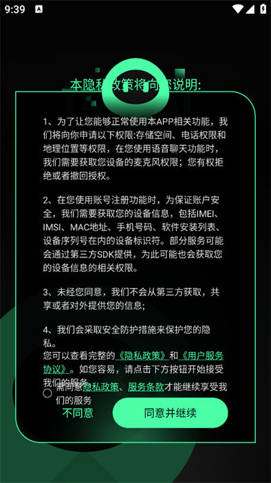1、打开软件之后阅读用户协议和隐私政策的内容,点击同意就可以进入软件;
