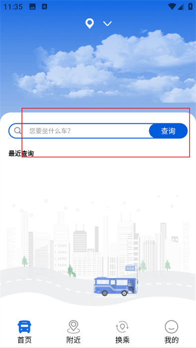 2、接着,在首页上能看到简单的搜索框,将公交站或者车辆名称输入,就能看到具体的路线;