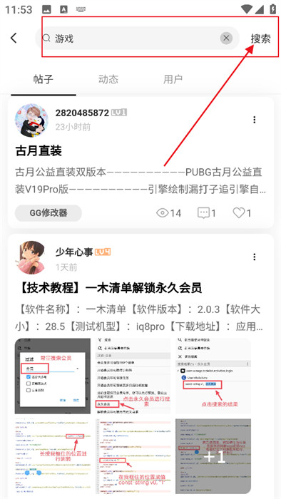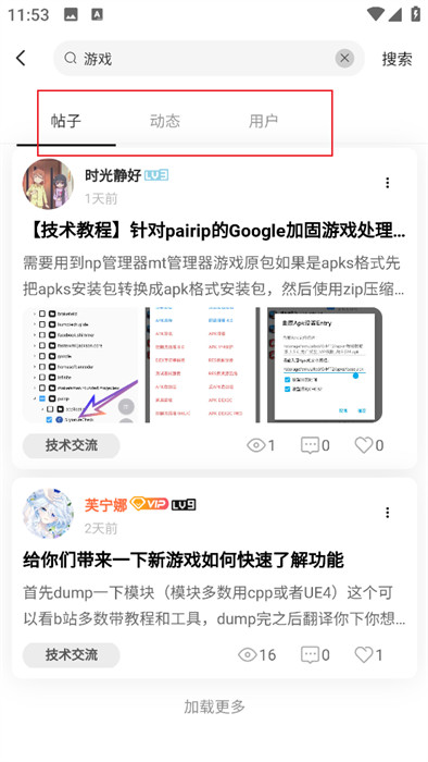 5、最后,你还可以切换不同的板块,如帖子、用户等等,完全能满足用户的需求。