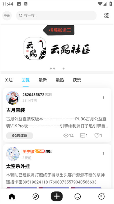 云鹤社区是一款免费的资源分享平台,其中给用户准备了很多现成的资源,并且能根据资源版本的更新来更新,致力于给大家增添更多有趣的玩法,同时其中的这些内容也都进行了调整,所有的页面看起来都非常的清爽,不会产生广告影响到使用,不仅如此,你还可以通过发帖的方式来实现讨论,和其他的小伙伴一起到软件上感受游戏和软件的趣味性,如果你也对类似的事件十分的感兴趣,一定要来小编这里体验一下!