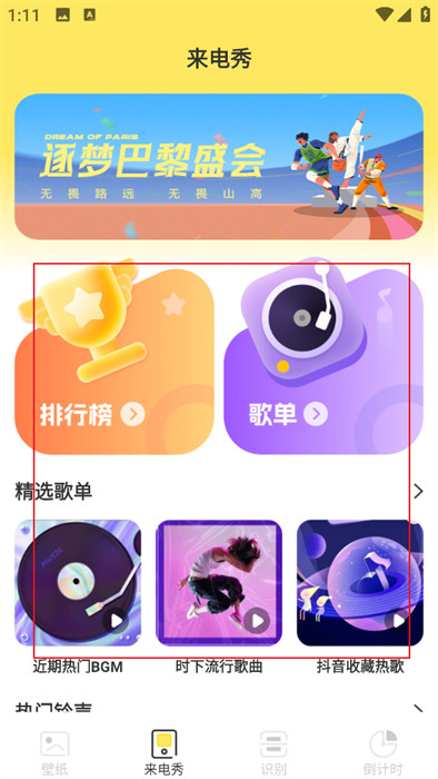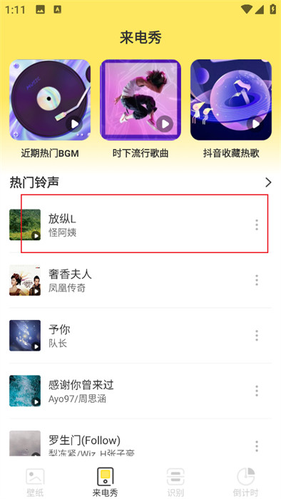 2、接着,切换到【来电秀】页面,能在这里尽情筛选感兴趣的音乐资源;