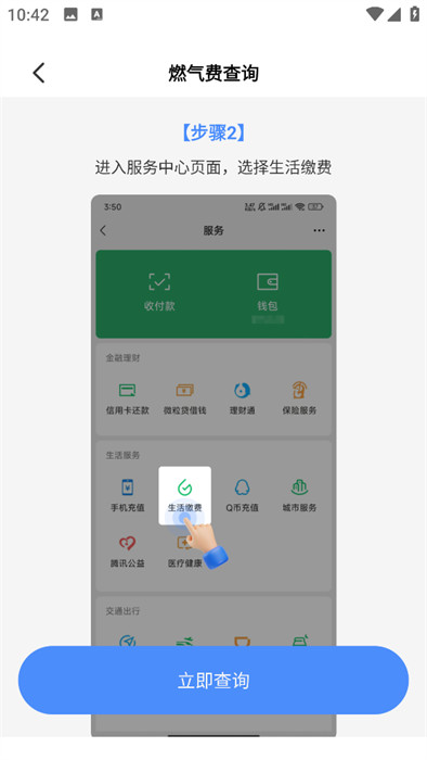 4、最后,点击下方的【立即查询】即可查看当月的燃气。