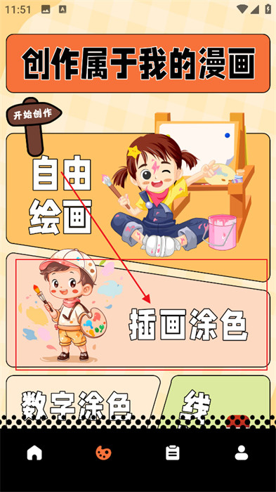 3、紧接着,可以点击页面上的【插画涂色】按钮,会自动跳转页面;
