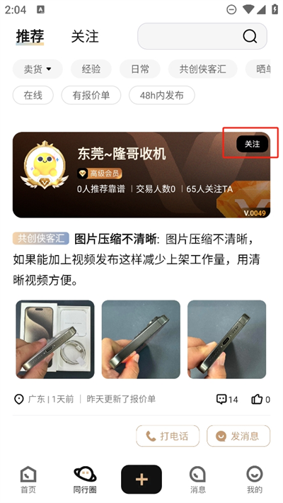 3、遇到感兴趣的报价用户还支持一键关注,及时查看他们发布的最新报价信息等;