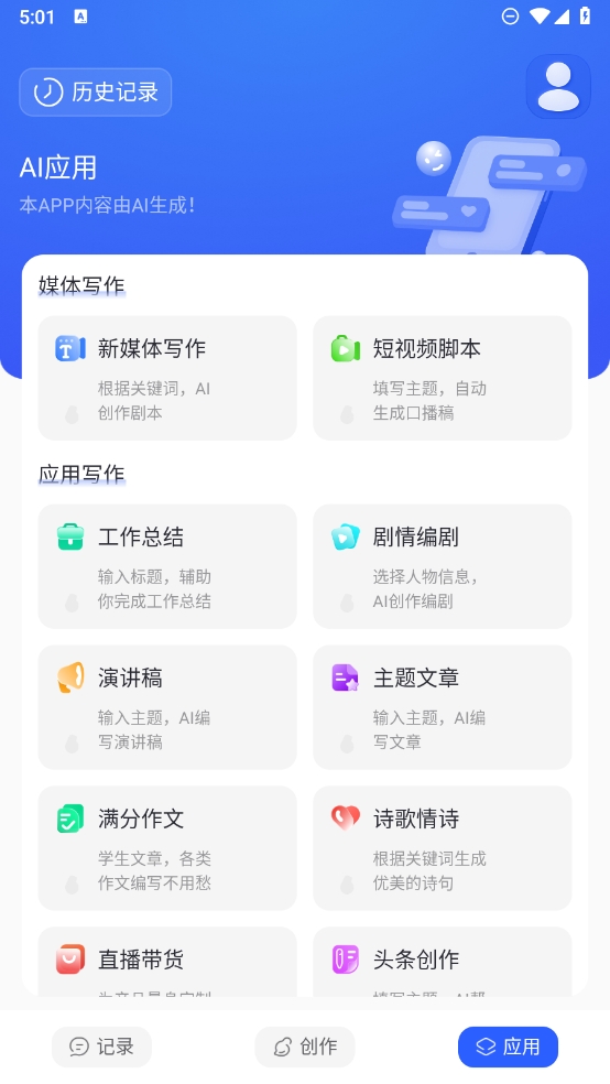 3、在应用中可以看到各种实用的应用可以选择,让大家可以更轻松的完成内容编辑写作功能;