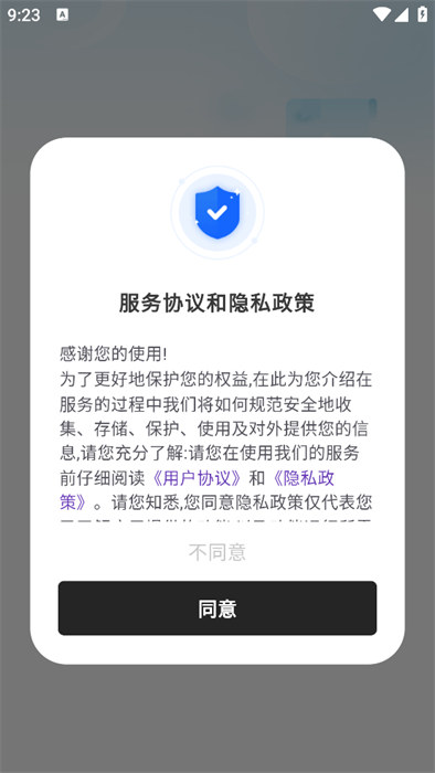 1、打开软件之后阅读用户协议和隐私政策,点击同意之后就能进入软件;