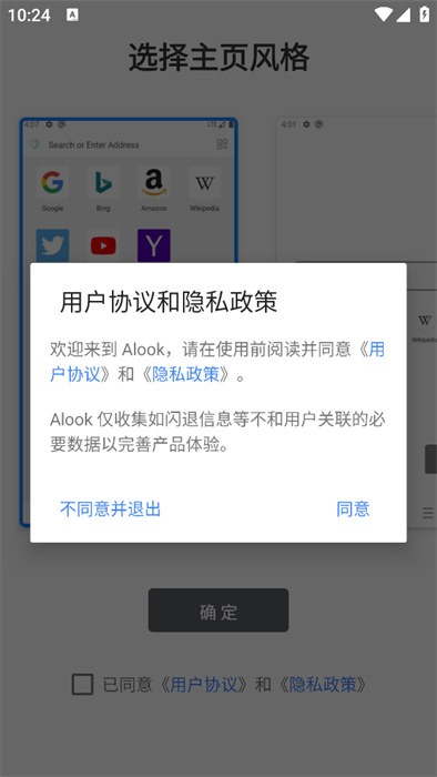 1、打开软件之后阅读用户协议和隐私政策,点击同意之后就能进入到软件;