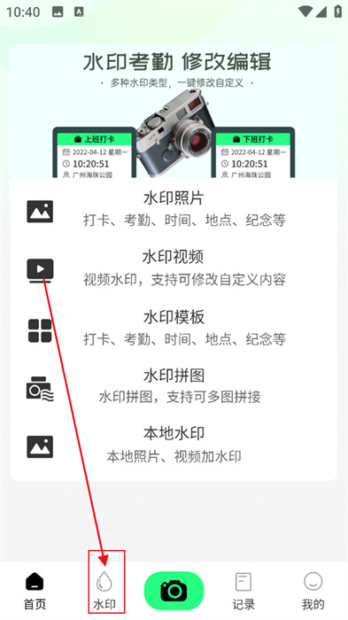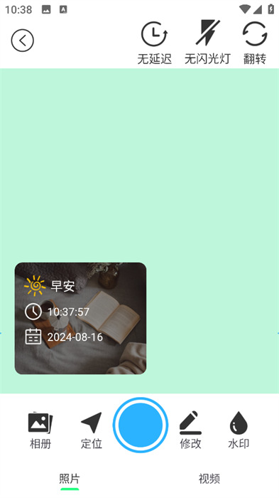 3、点击【水印】板块,能在这里看到不同场合下的新模版,直接点击就能进入拍摄页面,如下图所示;