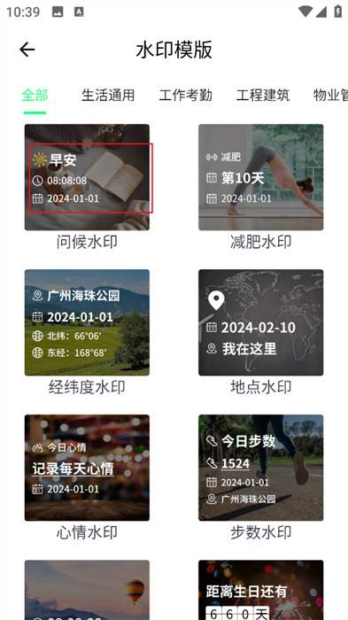 目前设备中的水印模版十分的多样,无论是任何状态都可以挑选,你还能直接到线上进行细节调整;