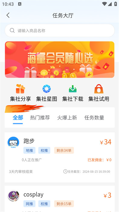 2、在任务大厅里面可以看到各种各样的任务,选择自己所需要的吧;