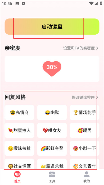 3、紧接着,我们在设置完成之后,可以直接点击【启用键盘】,开始和自己好友的聊天;
