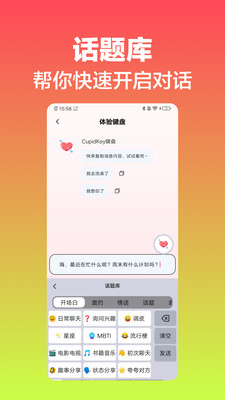 CupidKey软件是一款高效交流回复的强大软件,轻松能让大家都顺利挑选到合适的话题,并减少尴尬聊天的情况,并且其中也整理了现成的场景聊天话题,方便在空闲时间进行锻炼,简单的了解就能提高自己的情商,并能在日常交流中让好友感受到明显的变化,不仅如此,这里还结合了一些润色的工具,方便给更多小伙伴增添聊天的技巧,并且还有恋爱导师的辅助,一定能拿下自己喜欢的对象,如果你在日常的聊天中也经常遇到卡顿的情况,一定要来小编这里尝试一下。