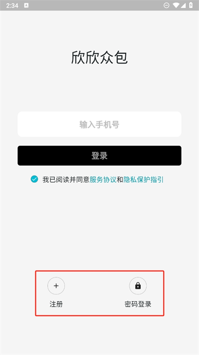 2、除此之外如果是新用户需要通过注册进行登录,而老用户也可以直接用密码进行登录;