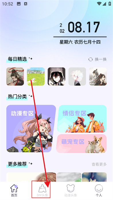 1、首先,大家可以从桌面进入到软件,并点击【diy头像】按钮,如下图所示;
