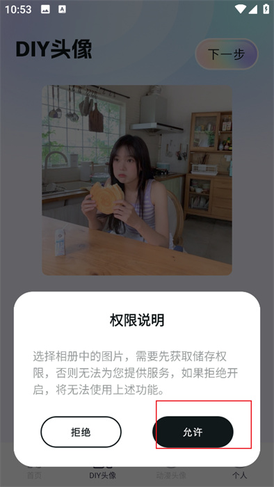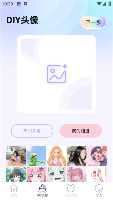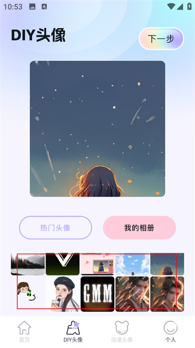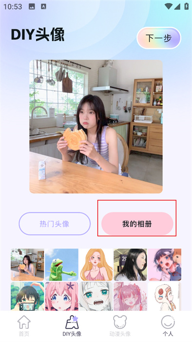 4、可以快速看到相册中的图片,点击就能展示头像的效果,并点击右上方的【下一步】按钮;
