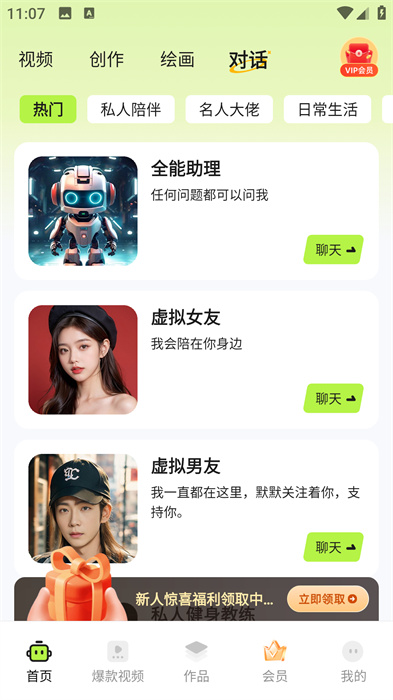 其中有着很多虚拟人物进行陪伴,全天候都能和你一起进行对话,能在你无聊的时候给出解决的方案;