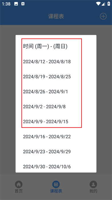3、紧接着,选择自己目前课表的一些时间段,并点击进入;