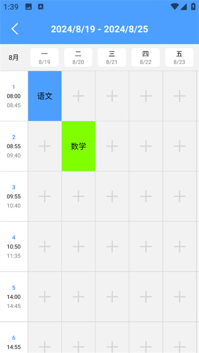 4、你会看到这里有着现成的课表模版,直接点击中间的加号就能跳转页面;