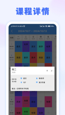 周计划myweek软件是一款专门提高大家日常学习生活品质的软件,可以直接将自己的课表导入到软件内,并能非常顺利的进行浏览,并且在每次开始上课之前都能给出非常明显的提醒,避免出现任何上课迟到的情况,不仅如此,这里的页面设计的十分有趣,能给相同的课程添加上颜色,不论是任何状态下也能及时的进行整理,其中还准备了一些简单的小工具,如反义词、转换、单词查询等等,都能在空闲时间进行学习,想尝试的用户快来下载吧!