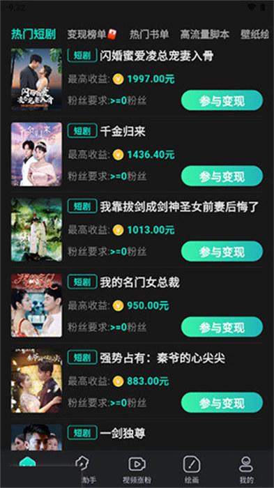 幻境漫影是一款十分好用的创作内容的软件,这款软件汇集了小说和视频推广的功能内容,集合了十分丰富的小说资源内容和视频制作的功能内容,让用户们能够轻轻松松的将热门的小说内容转化成短视频内容,在各大平台上面去进行推广的操作,不管是网络小说的读者还是短视频创作的爱好者都能去进行创作,还拥有智能视频编辑的工具内容,只需要十分简单的操作就可以将小说的章节转化成生动有趣的短视频内容,不需要专业的视频制作的技能。