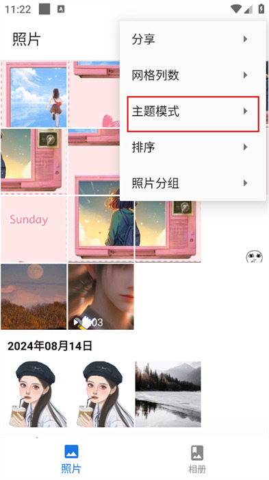 3、紧接着点击右上方的三个点,就能看到更多不同的设置,点击【主题模式】,如图所示;