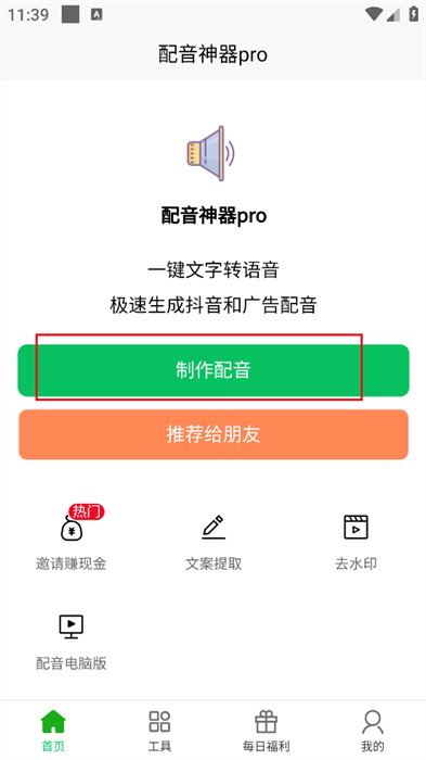 3、紧接着,你可以在软件跳转的页面当中,输入需要配音的文案,以及声音和语速,这样就能高效生成配音;