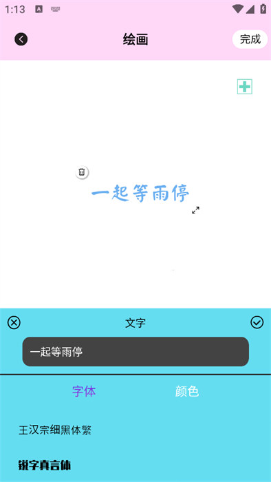 2、输入自己想要的文字内容,根据用户们自己个人的喜好选择文字的字体和颜色;