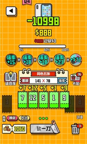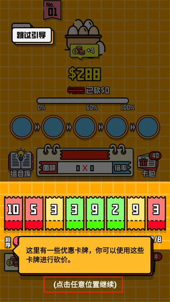 利用自己手中不同能力的卡牌,将所有商品的价格都全部的打下来,征服一次次挑战;